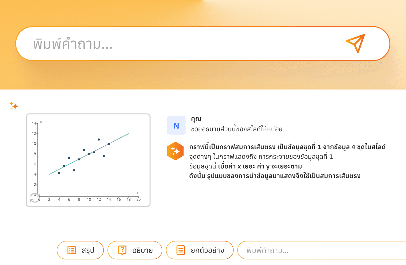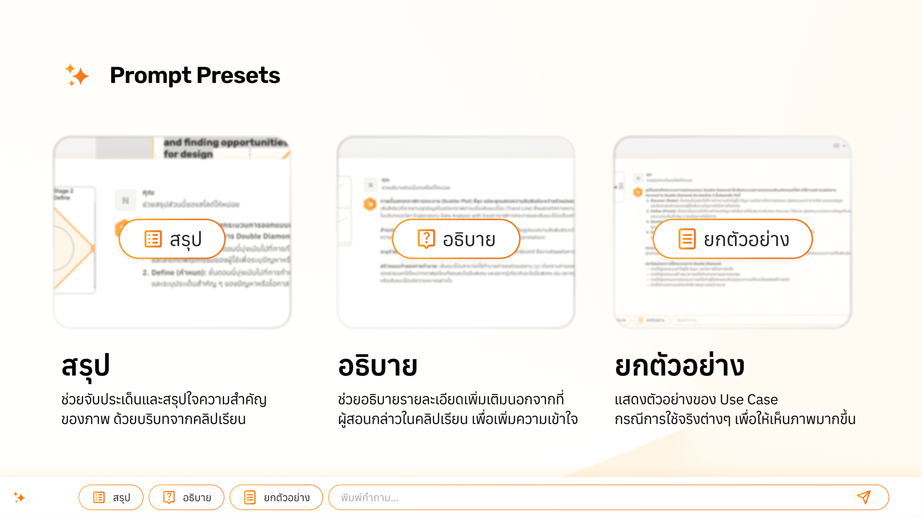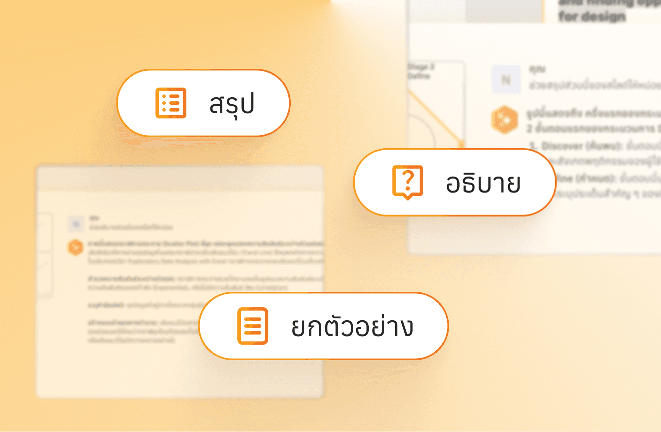 Some learners know they’re confused but don’t quite know what to ask. Coming up with a question can feel harder than the content itself. So we added prompt presets to make things easier. Summarize, Explain and Give Examples. These 3 options can help users dive deeper instantly without needing to figure out the perfect question first.
