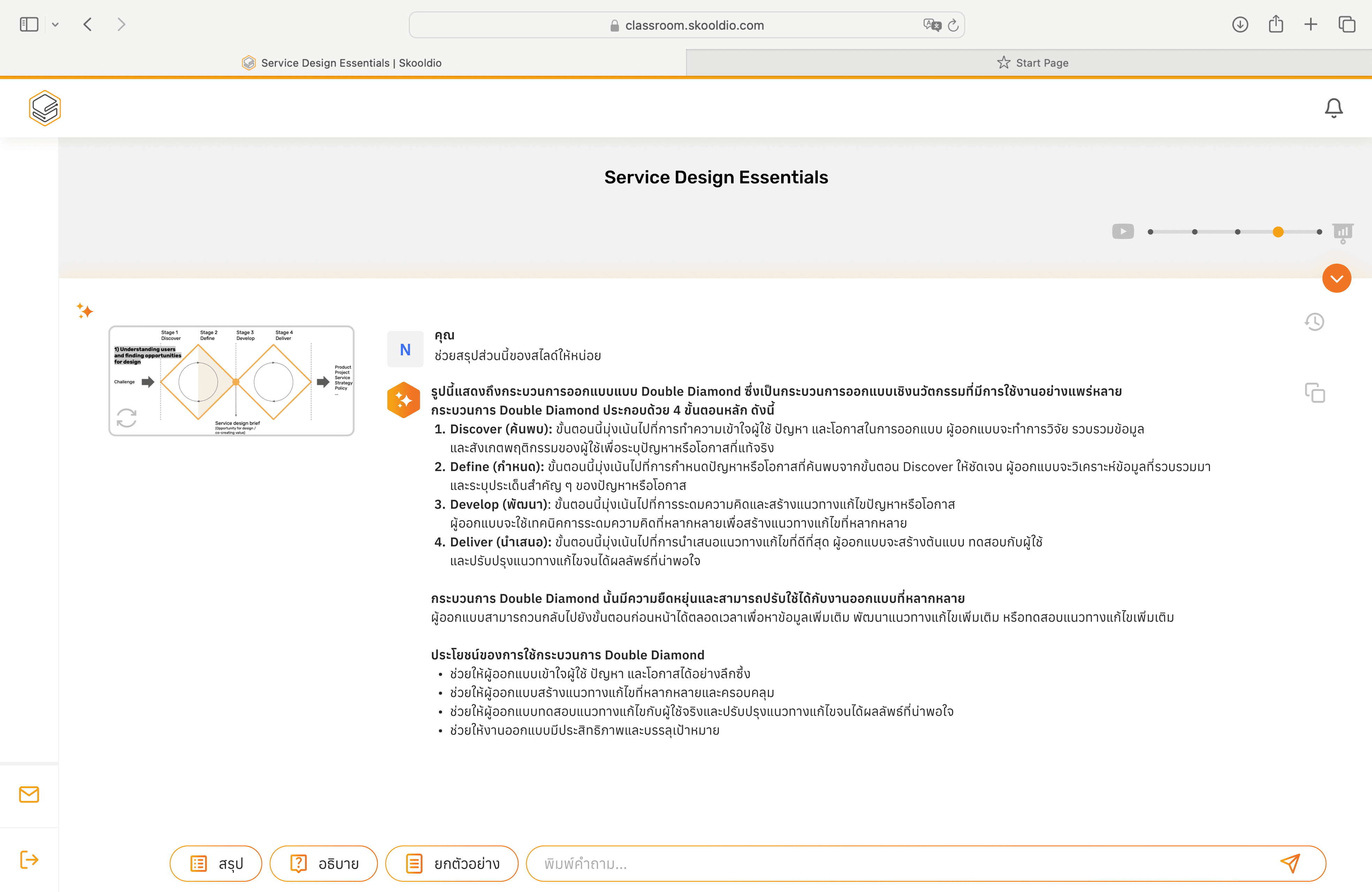 We were tasked with creating new services, products, features and/or working methods that leveraged Generative AI. The goal was to strengthen Skooldio in terms of internal operations, content creation or the platform itself, aiming to ensure future business growth and development.